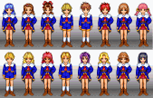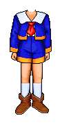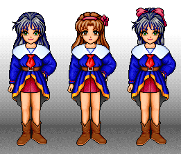 | 富士通ハビタット 1998年頃,チャットを主体とした仮想世界での生活を楽しむ通信ゲーム『富士通ハビタット2 V1』での「エーベルージュフェア」で使われたデザイン。カダローラ学園トリフェルズ校初等部冬服である。